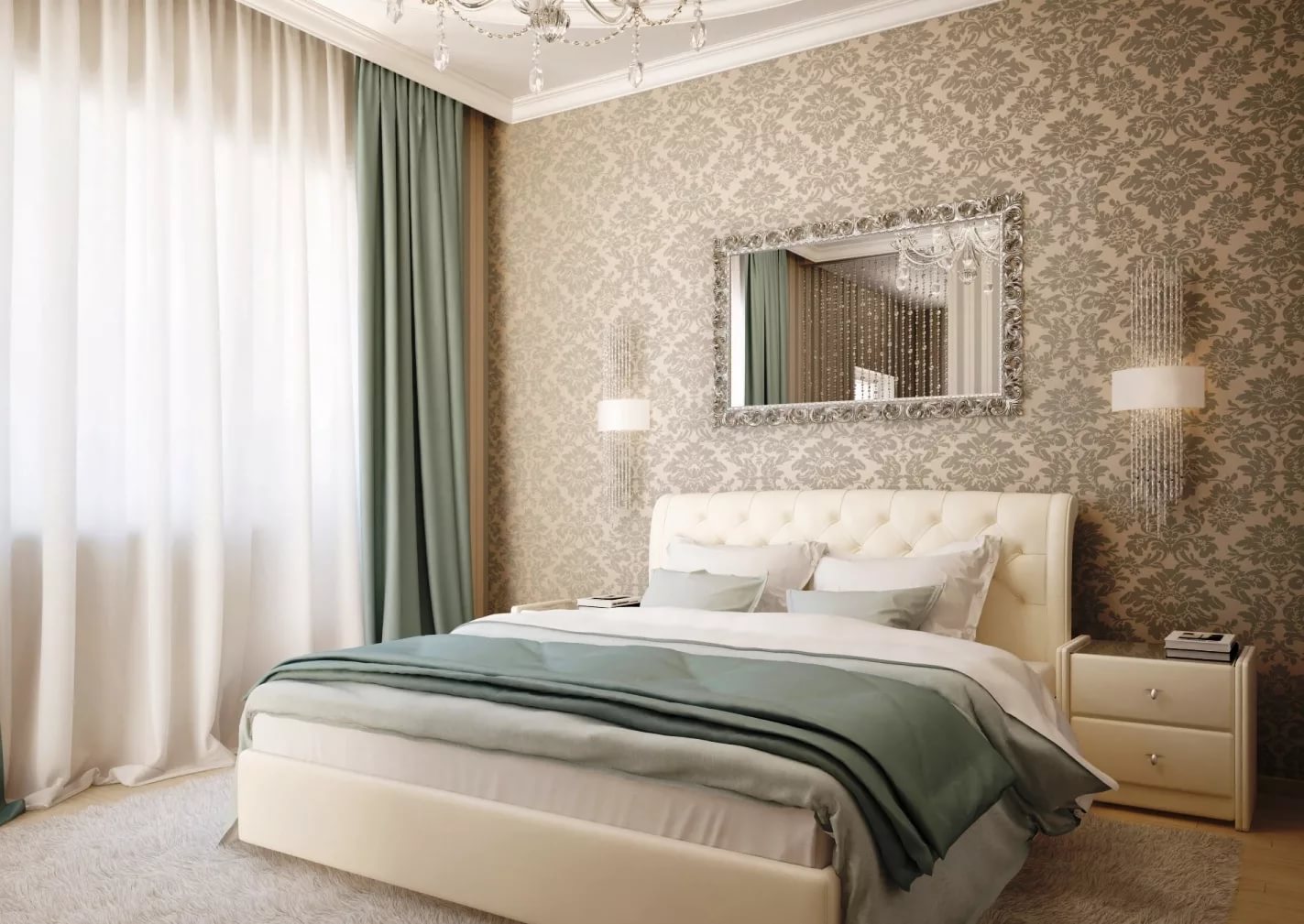 Вариант комбинирования обоев и мебели по цвету