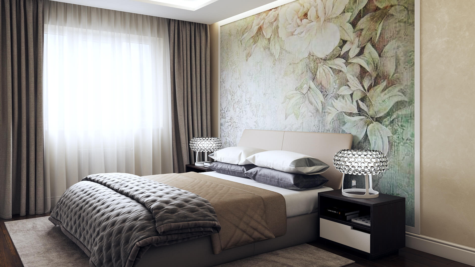Размеры комнаты могут стать одним из ключевых факторов дисбаланса, поскольку не все фактуры гармонично смотрятся в тесных пространствах. К примеру, обои с ярко выраженным рельефом, в виде крупного рисунка будут уменьшать и без того тесный интерьер.