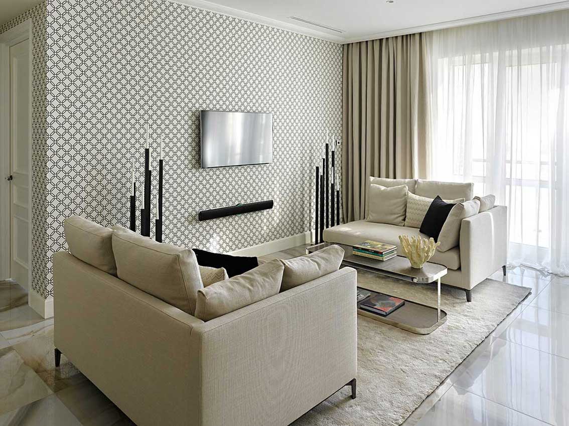 текстильные – не используются на кухне и в ванной в силу отсутствия устойчивости к влаге, огню, а также низких показателей прочности, но найдут применение в качестве декоративных вставок или акцентных покрытий на стенах гостиной и спальни;