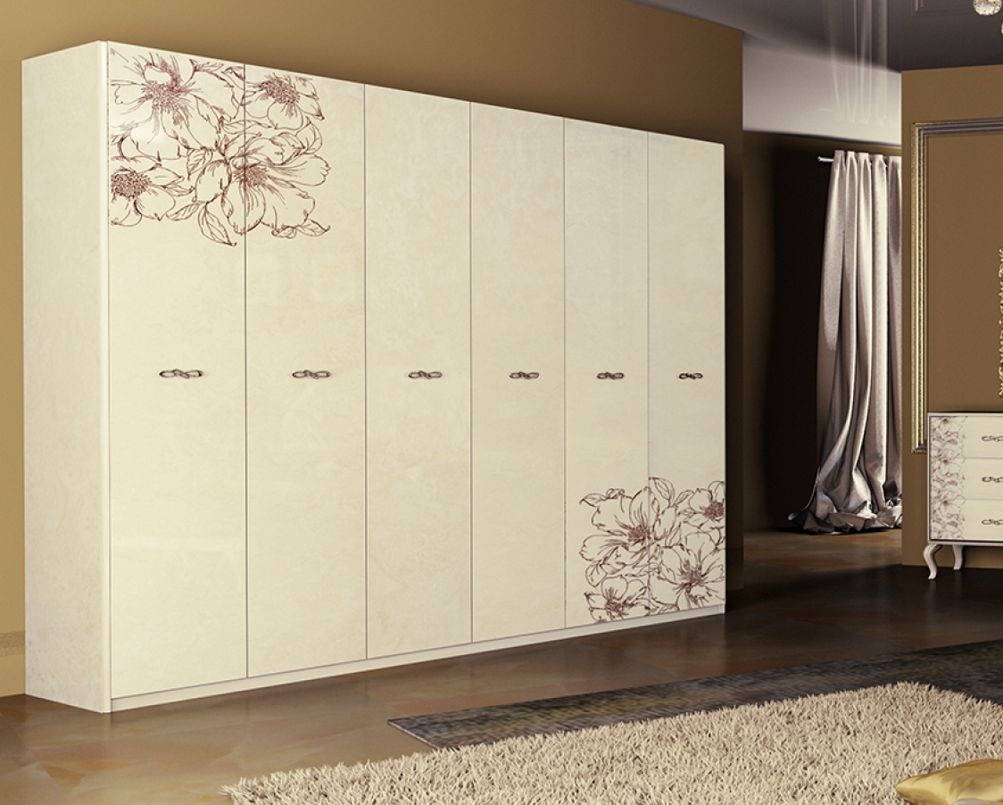 добиться эффекта уютного интерьера, нескучного и оригинального можно добиться вставками ярких оттенков. Если в комнате распашной белый шкаф купе и кровать, то шторы или обои нужно сделать броскими, к примеру, шоколадными или темно-синими