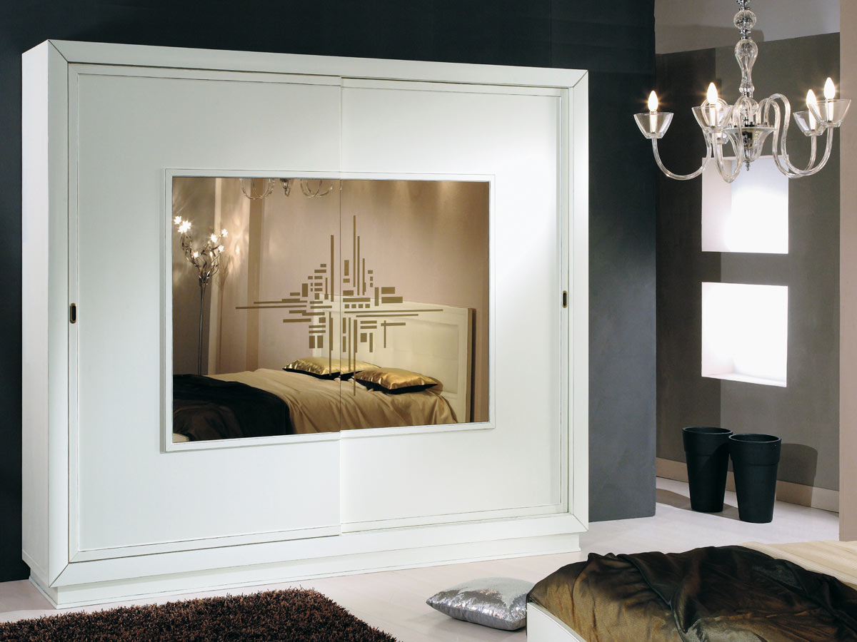 шкаф в белых тонах может стоять вдоль стены, но обратит на себя внимание при наличии зеркальных панелей;