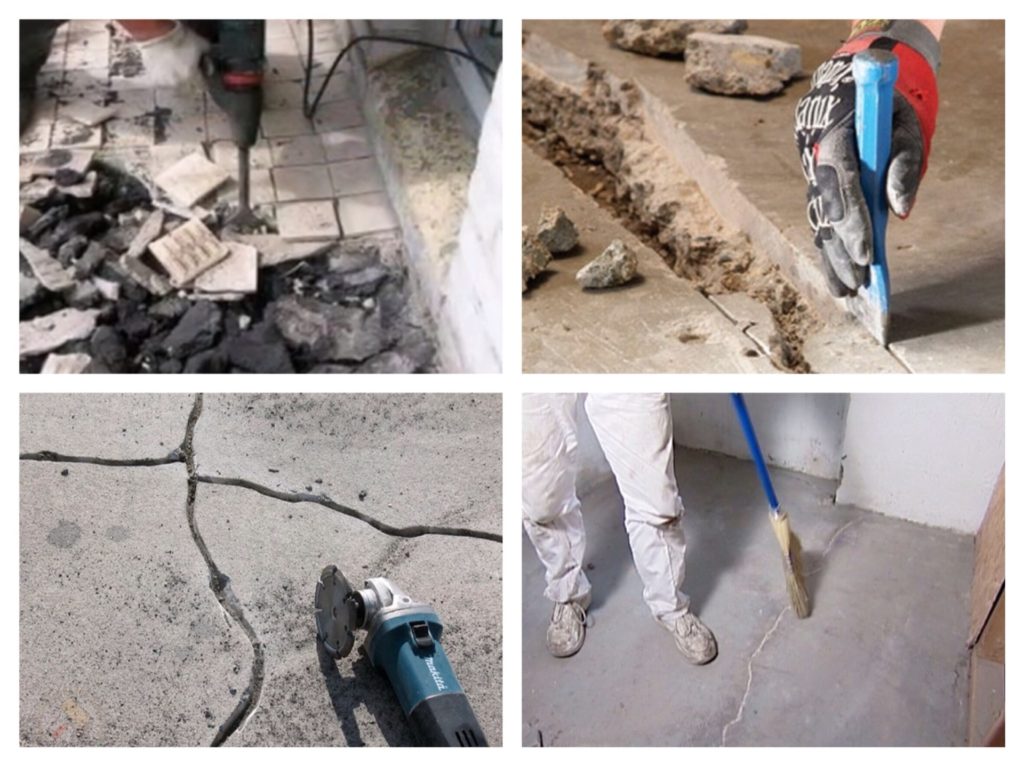 - Демонтируем поверхность пола, при необходимости укрепляем балконную плиту.