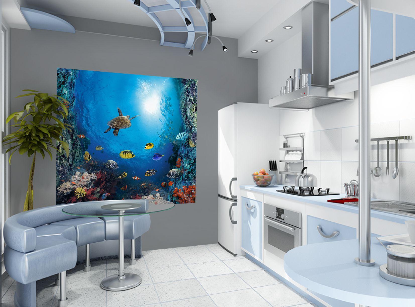 3d обои с изображением океана на кухне