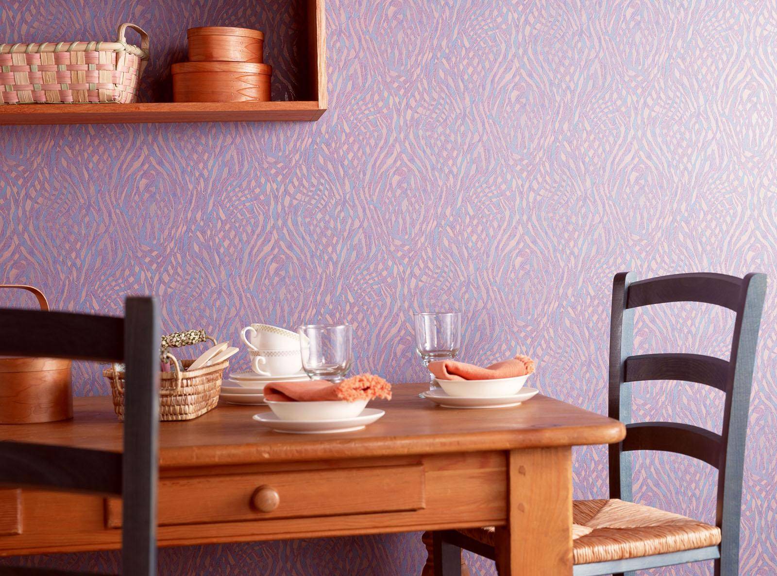 Сиреневые обои в интерьере кухни