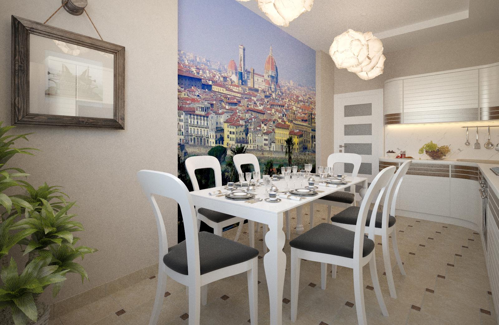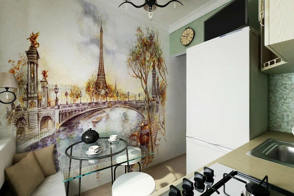 3d обои с изображением города на кухне