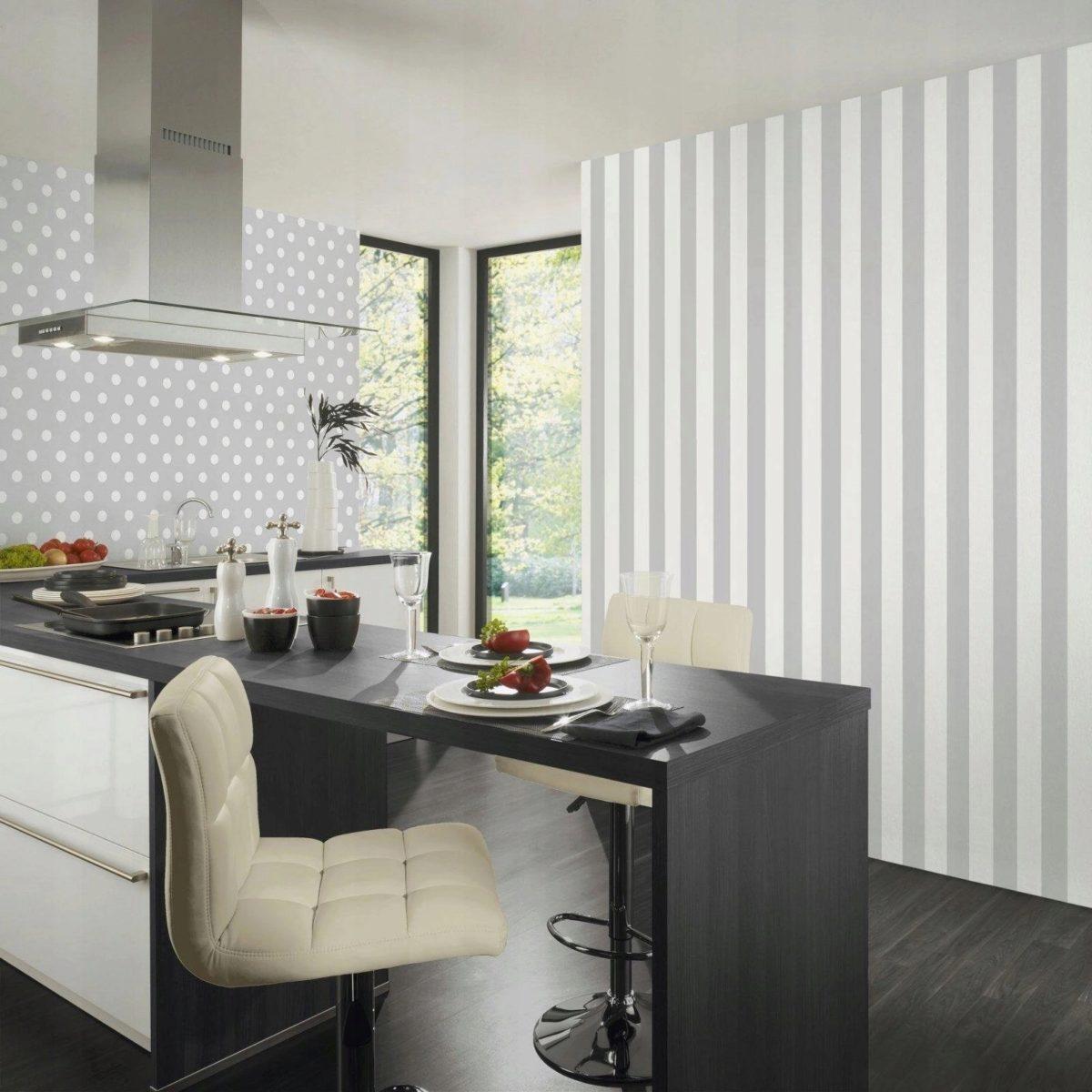 - Диагональные линии, украшающие обои, сделают кухню динамичнее, вселят в нее энергию движения;