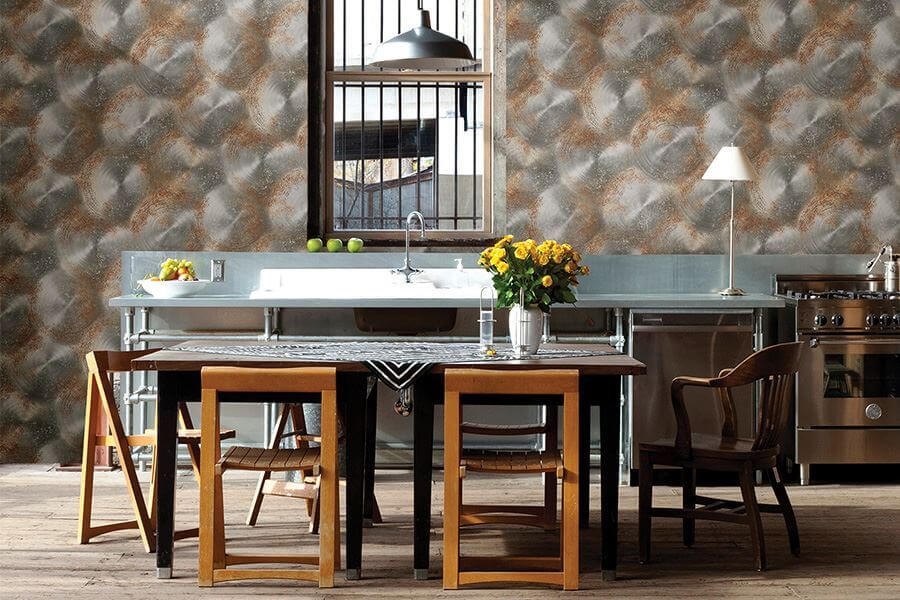 Если ищете, какие обои клеить на кухне в определенном стиле, обратите внимание на этот совсем не бюджетный, но достойный вариант