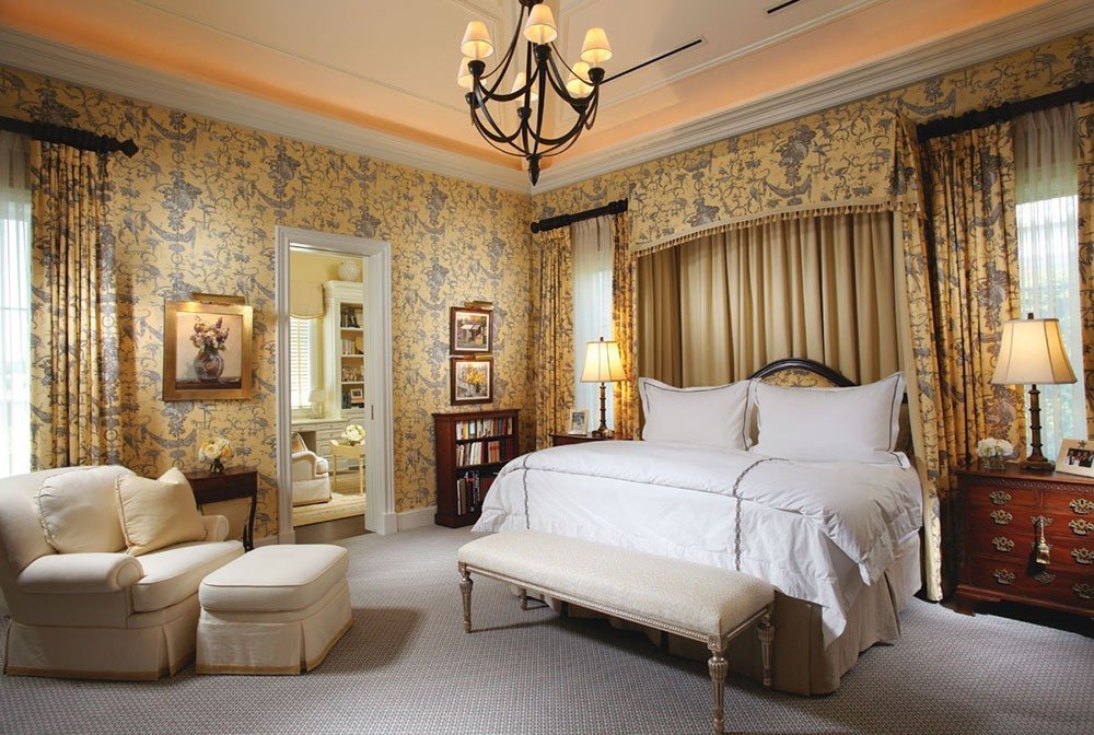 Еще несколько примеров удачного сочетания общего стиля интерьера, обоев и штор.