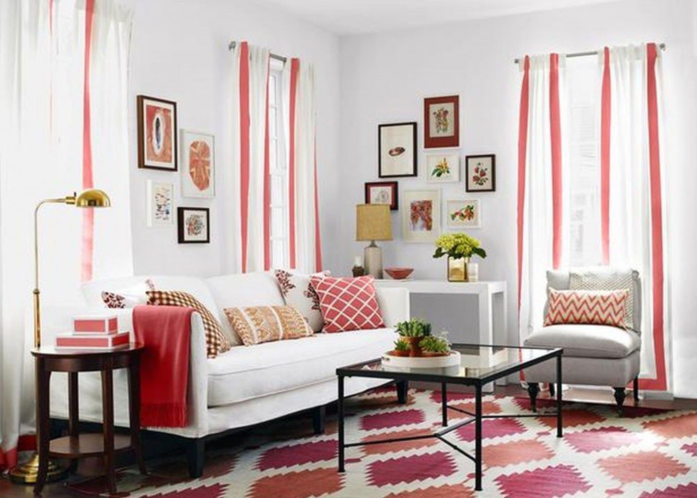 Благодаря текстилю теплых, сочных оттенков в комнате станет светло и уютно. Для подобного эффекта рекомендуется использовать розовые, персиковые, желтые занавески.
