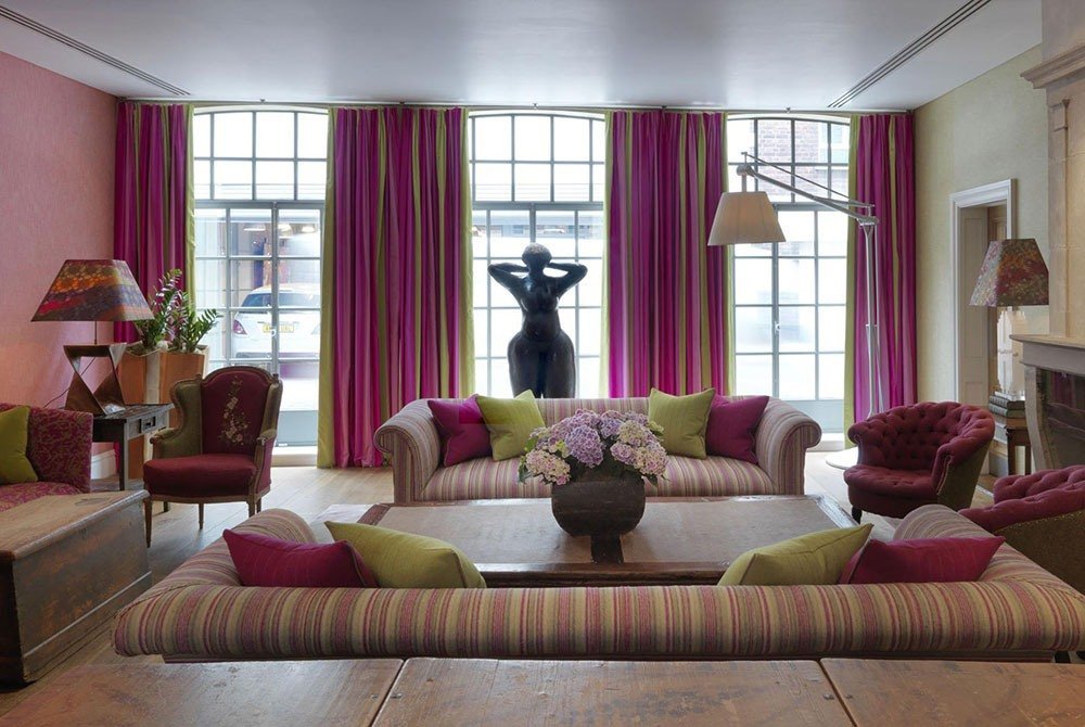 Материалы с принтом расширяют возможности дизайнера, позволяя по-новому сочетать шторы с обоями.