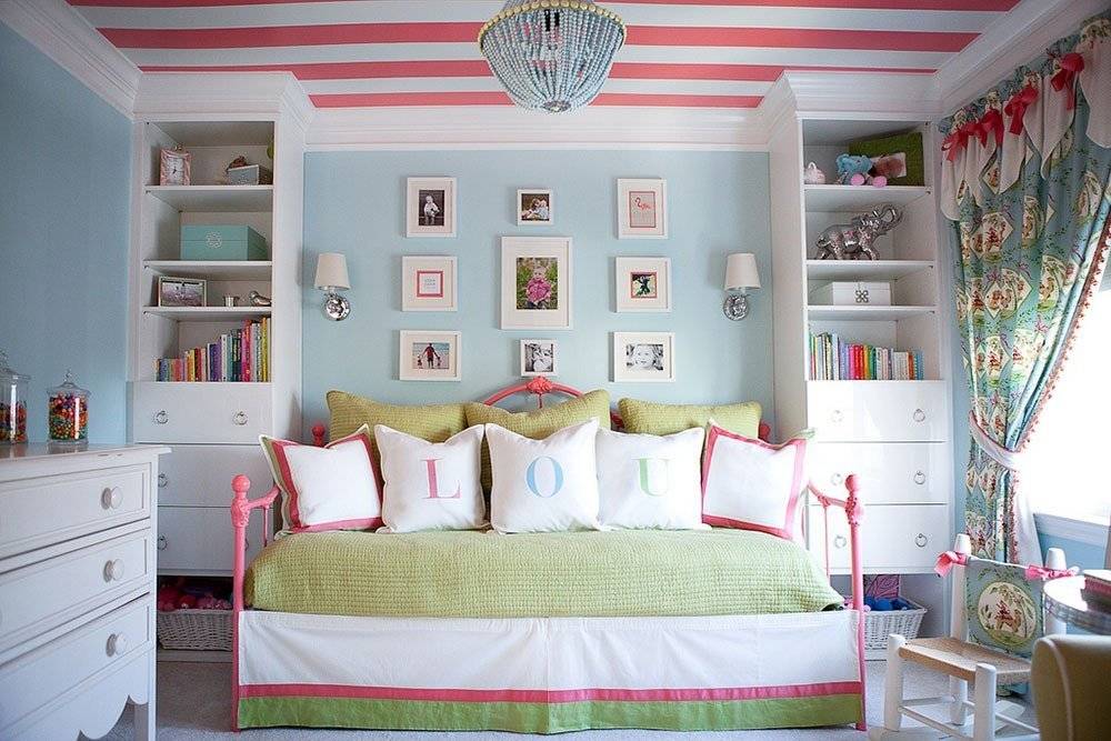 Текстиль с принтом органичнее всего впишется в интерьер с однотонным фоном. Если же одна из стен в комнате оформлена рисунком, текстиль можно подобрать под нее.