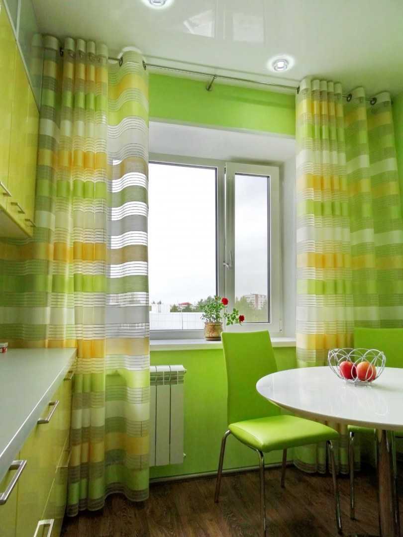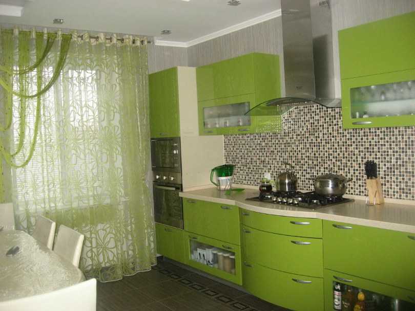 На кухонное окно допускается вешать шторы любого зелёного колера