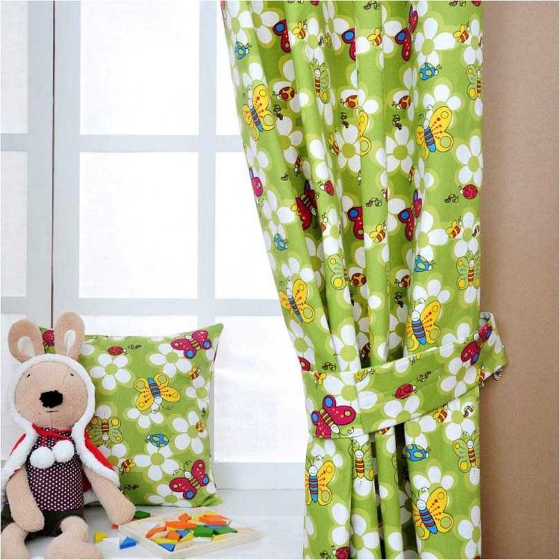 В помещение детской подойдут портьеры ярко-зелёной расцветки с игровым рисунком. Комнату младенца стоит оформить нежно-салатовыми гардинами