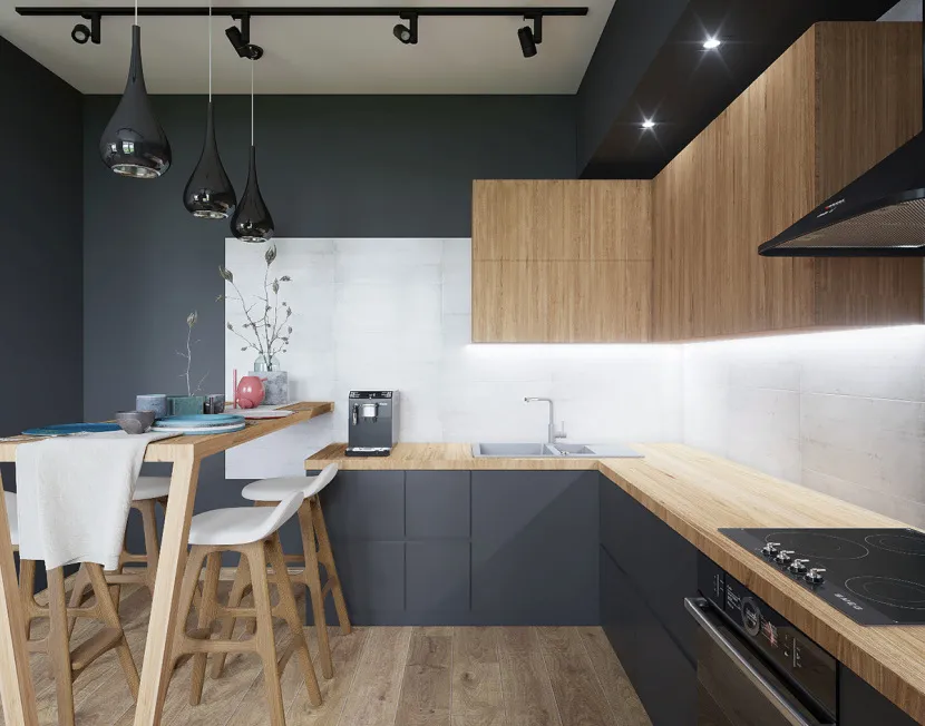 Отделка кухни деревом