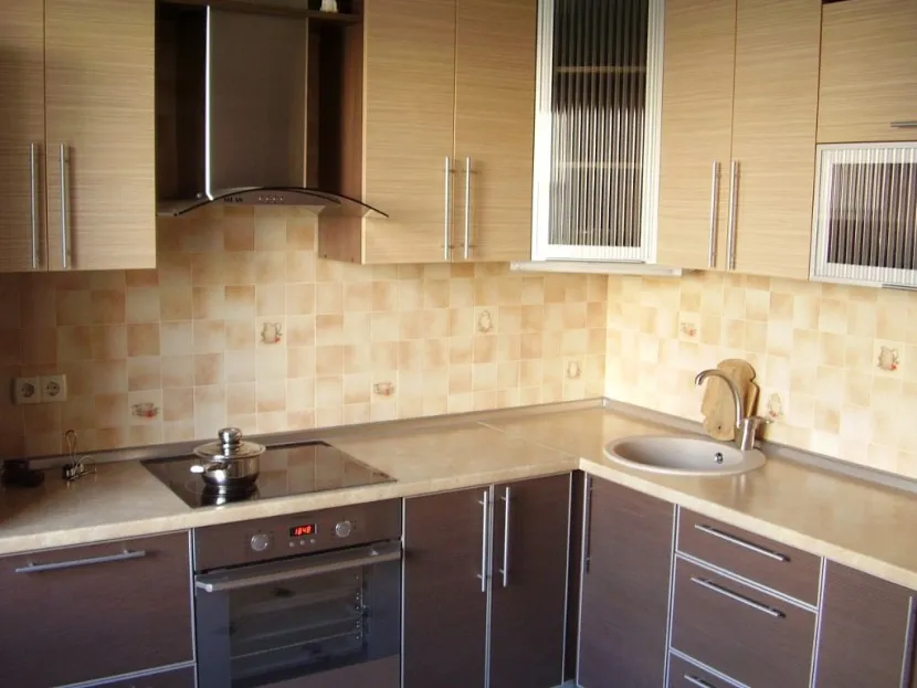 - Слабое место – наличие кромок. Кромки из алюминиевого профиля со временем тускнеют, вдоль них скапливается грязь. Кромки из ПВХ отклеиваются, особенно вблизи духового шкафа.