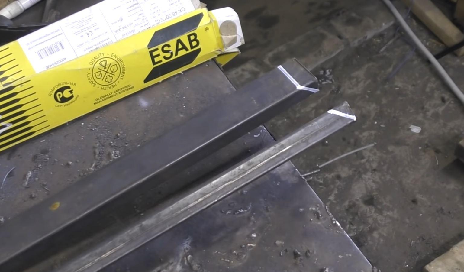 Перед сваркой каркаса следует отрезать нужные куски труб для каркаса. Длина основных труб по периметру каркаса равна длине и ширине калитки, срезы выполняются под углом 45°. Трубы перемычек каркаса режутся под углом 90°. Заусенцы на срезах следует зачистить, ржавчину – отшлифовать. Это улучшит качество шва.