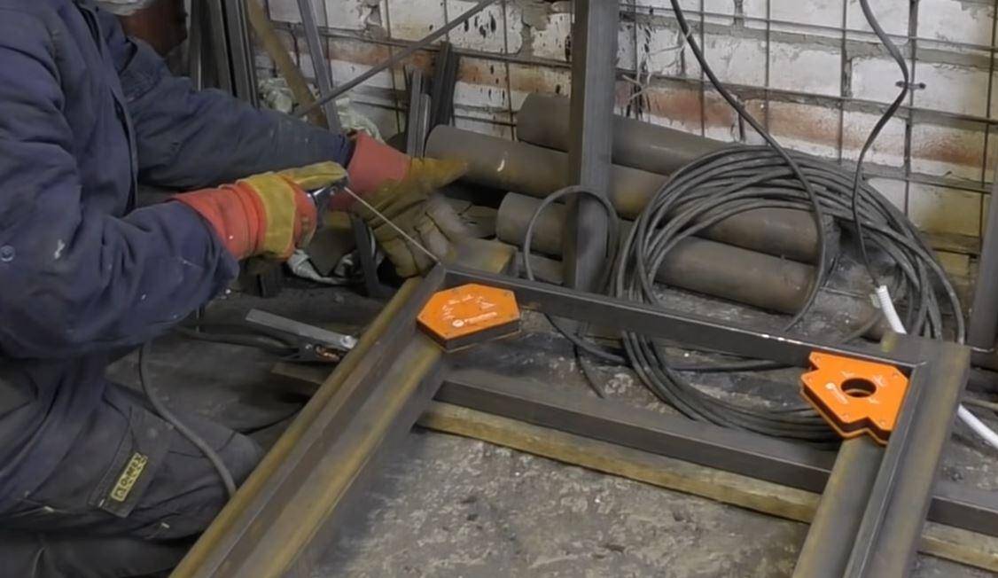 - Собрать прямоугольный каркас из профилированных трубок. Сварить отдельные элементы.