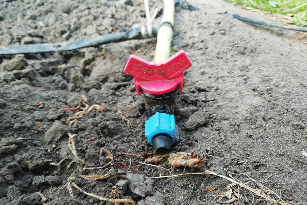 Для дополнительного удобства, после каждого тройника можно установить краны, которыми будете регулировать подачу воды. Это удобно когда на огороде растут разные овощи.