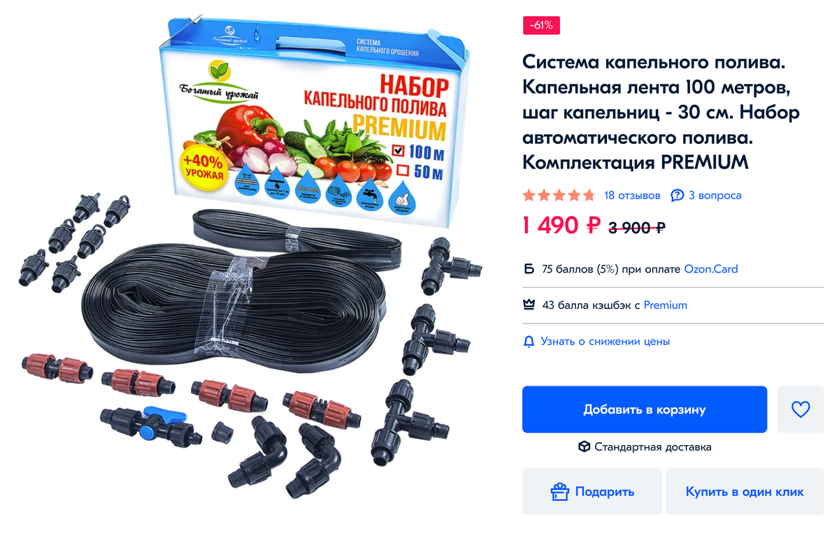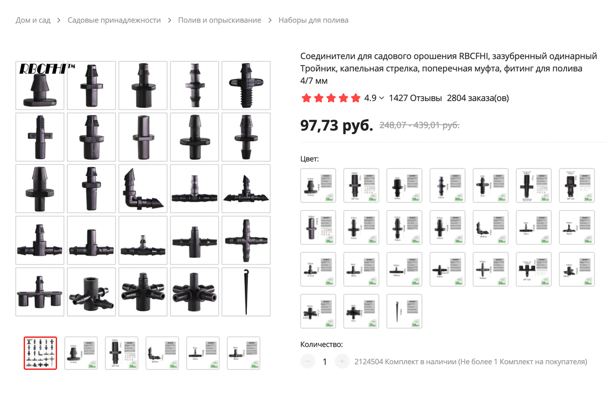 В магазинах продают готовые наборы для капельного полива. В них не нужно ничего рассчитывать и покупать отдельно — в комплекте уже есть все необходимое. Но такие наборы рассчитаны только на 2—4 десятиметровые грядки. У меня грядок больше, к тому же у них разные размеры, поэтому брать готовый набор не имело смысла.