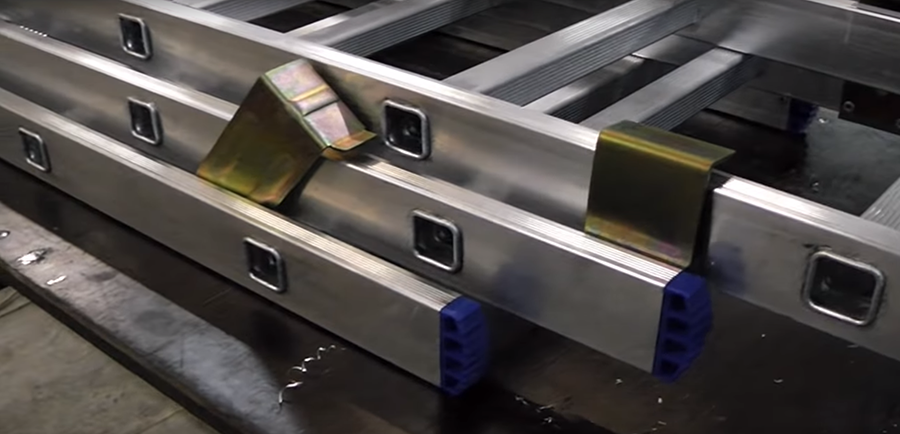 Как делается каркас лестницы, смотрите в этом видео: Далее, по нанесённой разметке, кобылки привариваются по всей длине тетивы. В процессе сборки каркаса ведётся постоянный контроль правильности геометрии всей конструкции. После завершения сборки каркаса его нижняя часть приваривается к нижней платформе, а верхняя часть к опорной стойке, зафиксированной при помощи анкеров на необходимой высоте.