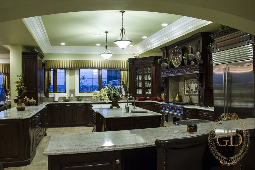 Учитывайте конфигурацию вашей кухни: в небольших помещениях лучше использовать скрытые карнизы, а для просторных можно выбрать резной, с фигурными украшениями.