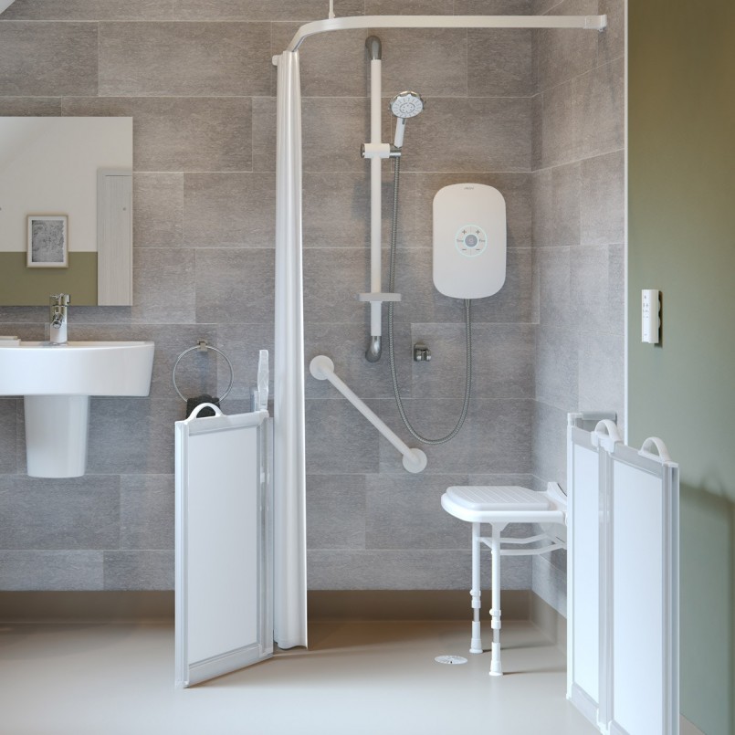 Для ванн с угловым расположением предусматривается уголковая штанга как цельной, так и составной конструкции. Небольшие ванны или душевые поддоны имеют две точки крепления на стенах, а вот для внушительных объемов рекомендуется выбирать вариант с дополнительной установкой стойки или потолочной штанги.