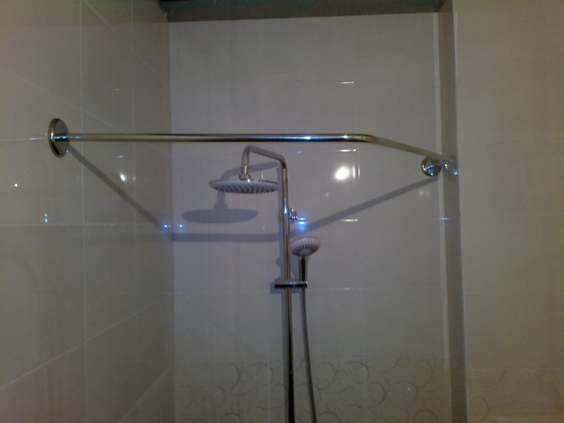 - Такие карнизы не могут быть использованы при угловом расположении ванны. Так как конструкция прямая, то может применяться только в небольших ванных или помещениях с соответствующим ремонтом и установкой двух плоскостей, расположенных противоположно.