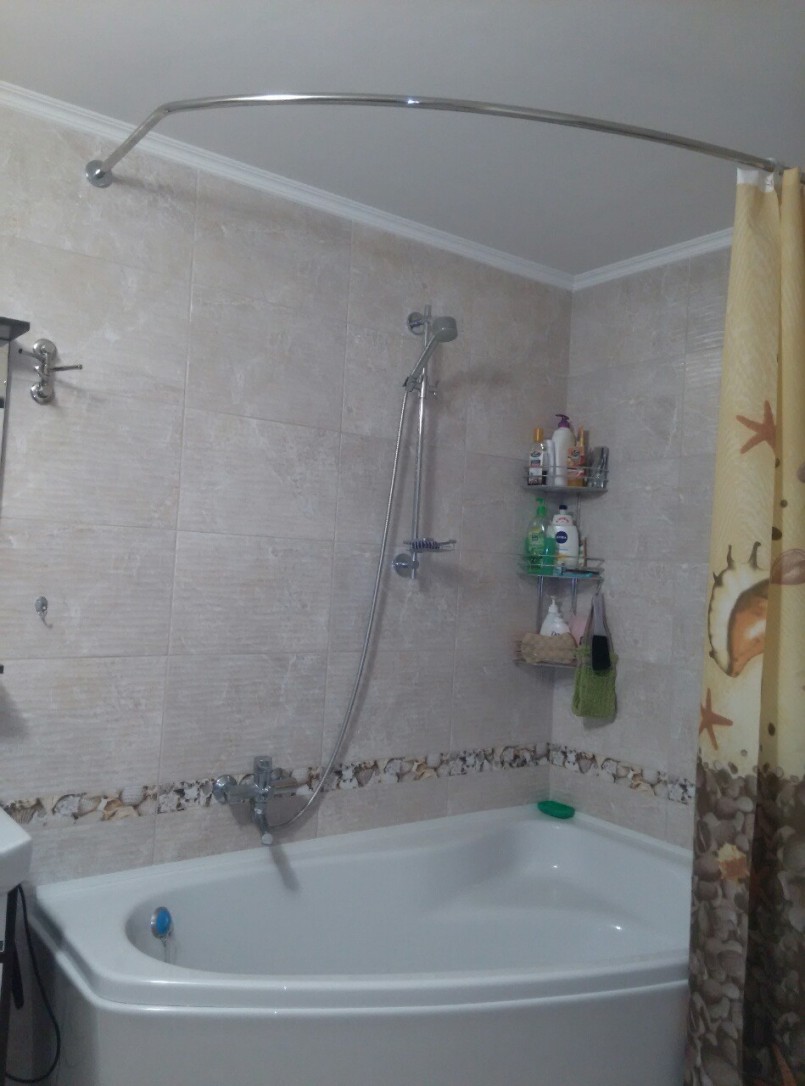 Легче всего с обыкновенной стандартной ванной прямоугольной формы длиной 1,5 м или 1,7 м. К ней подходят три вида карнизов: прямой и изогнутый (в виде дуги) или угловой, если ванная установлена в углу большого помещения. Сложнее с оборудованием нестандартной конфигурации – с выступами, неровными краями, вытянутой или закругленной формы.