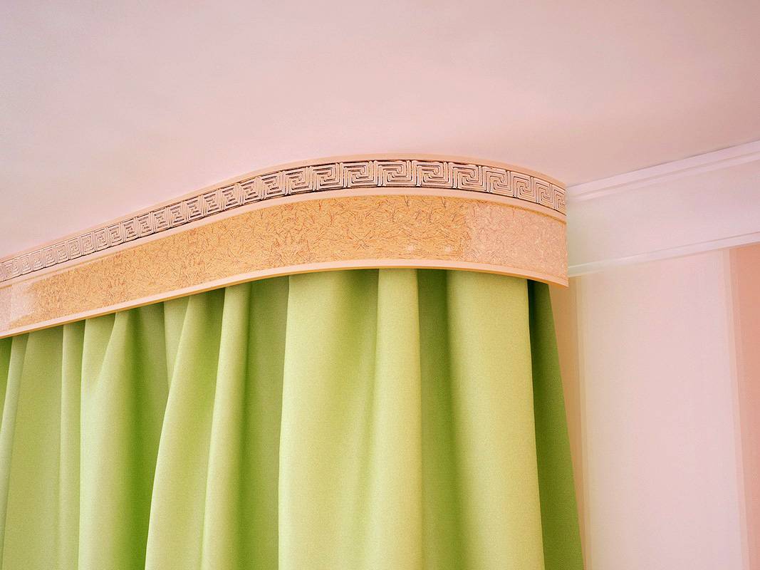 Карнизы различаются по варианту крепления, своей форме, оформлению, количеству навешиваемых слоев ткани.