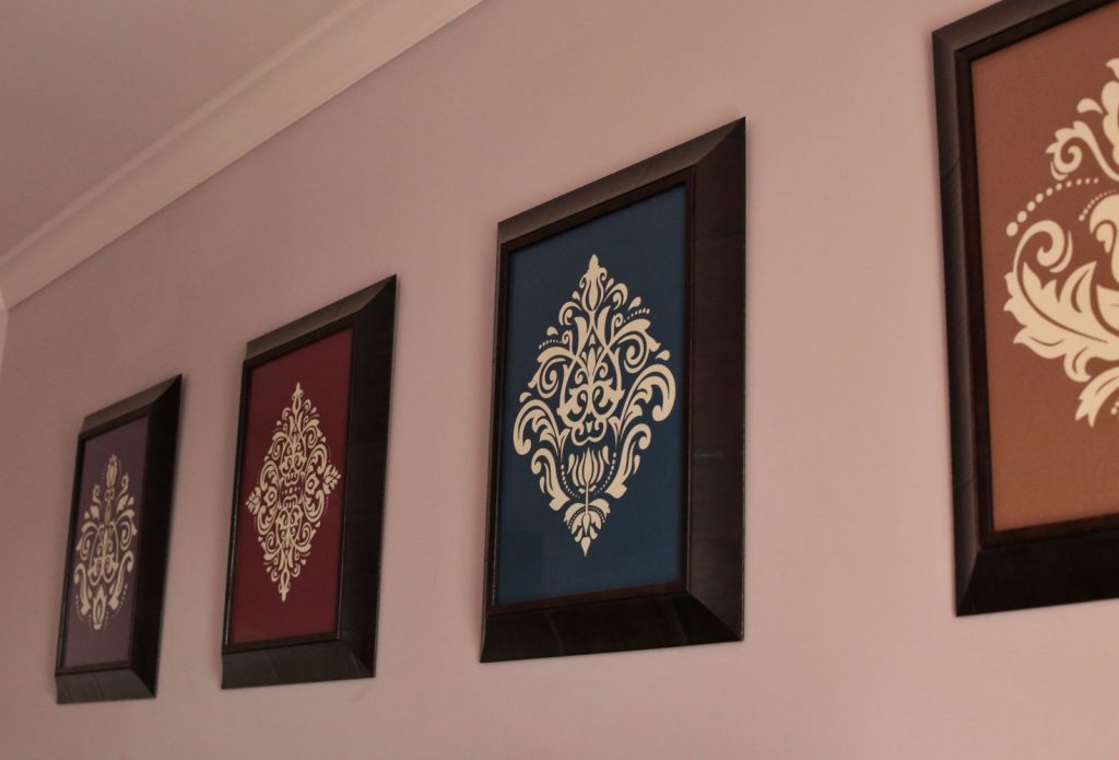 - картины делаются одинакового размера и тогда их размещают симметрично в определенном порядке (по линейке);