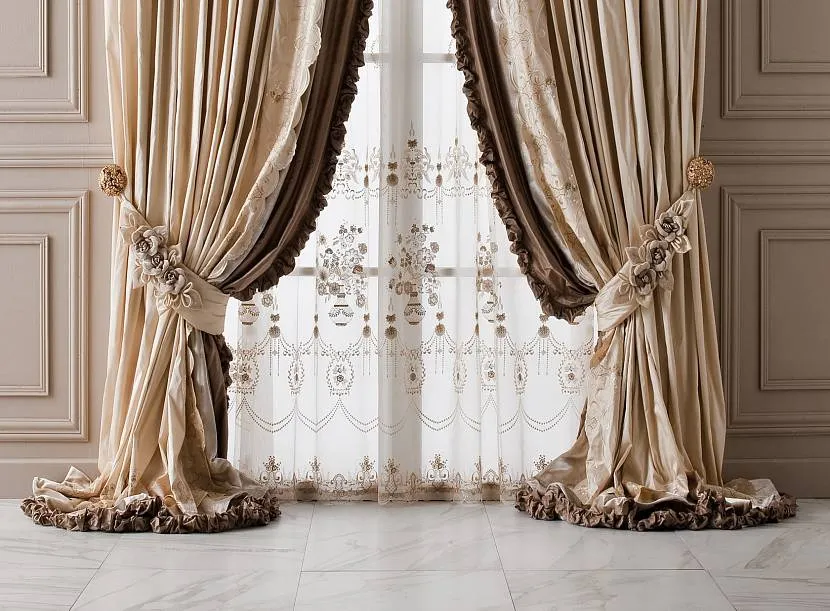 Некоторые элементы выполняют не только декоративную, но и практическую функцию. Занавес в классическом стиле в качестве украшения может иметь: