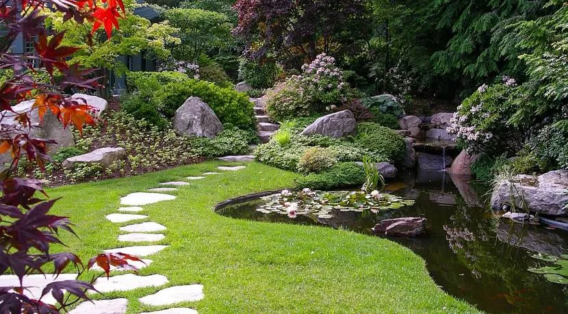 Рядом с ними дополнительно разбивают цветник, состоящий из теневыносливых цветов, нетребовательных в вопросах полива. Можно рассмотреть люпин, рудбекию, астры, георгины и прочие луковичные варианты.