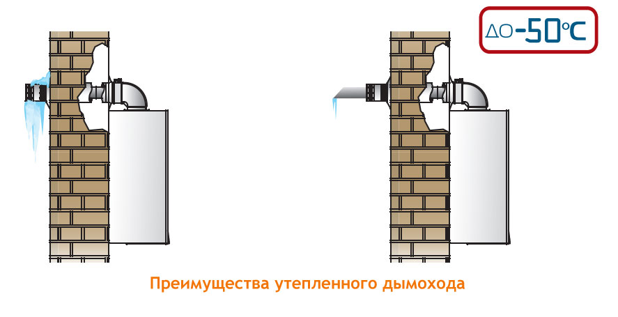 Данные варианты решения вопроса обледенения хорошо работают в суровых российских условиях, когда зимой температура может опускаться до -25 градусов, а температуры выходящих продуктов сгорания не хватает, чтобы растапливать замерзающий лед.