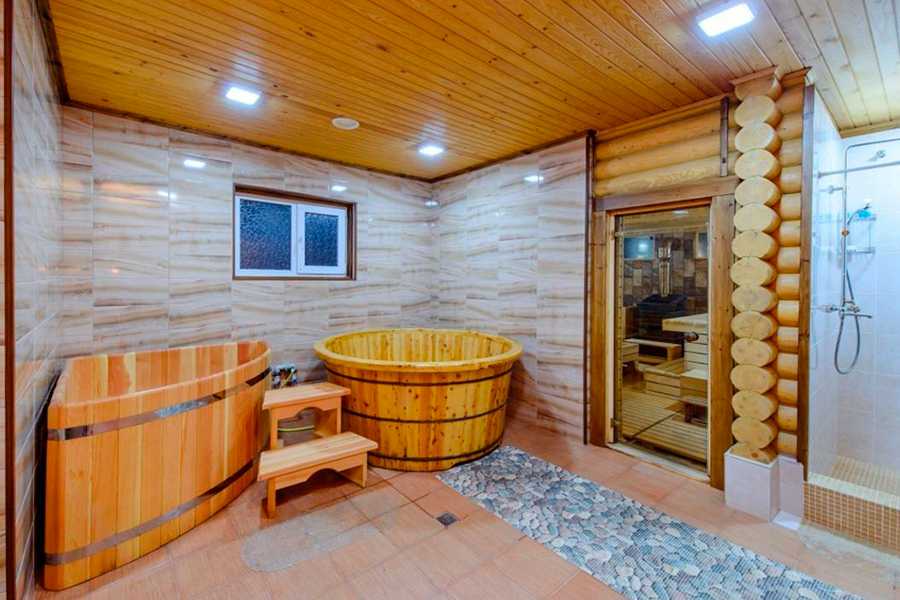 Под большими банями подразумеваются двухэтажные или одноэтажные постройки, где может быть спальная комната, бассейн и бильярдный стол. Такой вариант подходит для больших компаний и для любителей роскошного отдыха.
