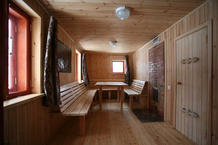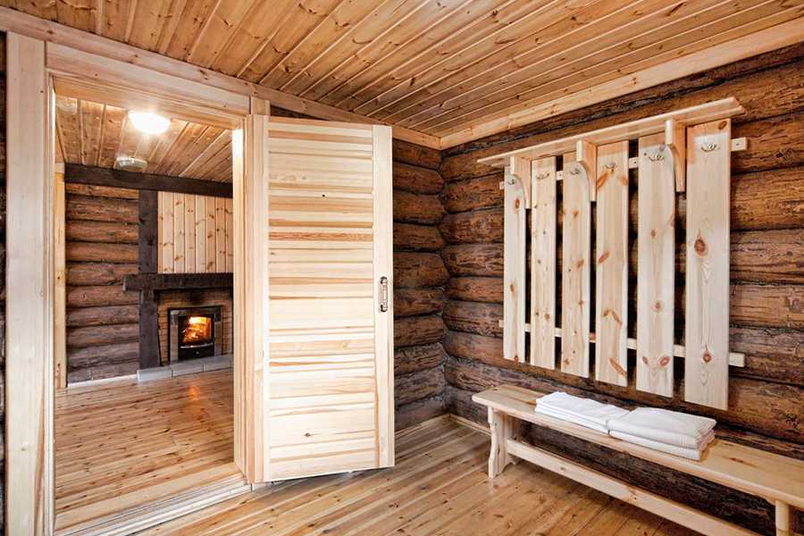Дверь должна быть невысокой, чтобы тоже сохранять тепло. Если наружная входная дверь в баню обычно размером в 2 метра, то дверь в предбанник не должна превышать 160-170 см, а в ширину – 60-70 см.