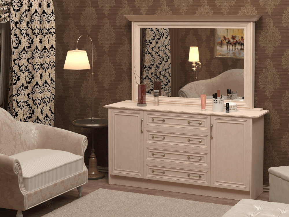 Комод с зеркалом в интерьере спальни – преимущества и особенности