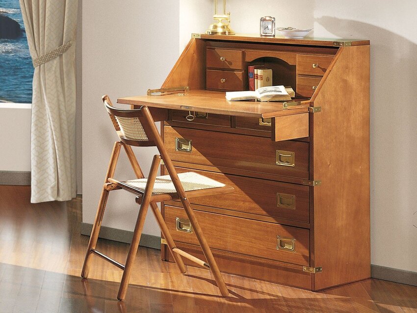 Комод-секретер, который с легкостью превращается в столешницу для размещения ноутбука.