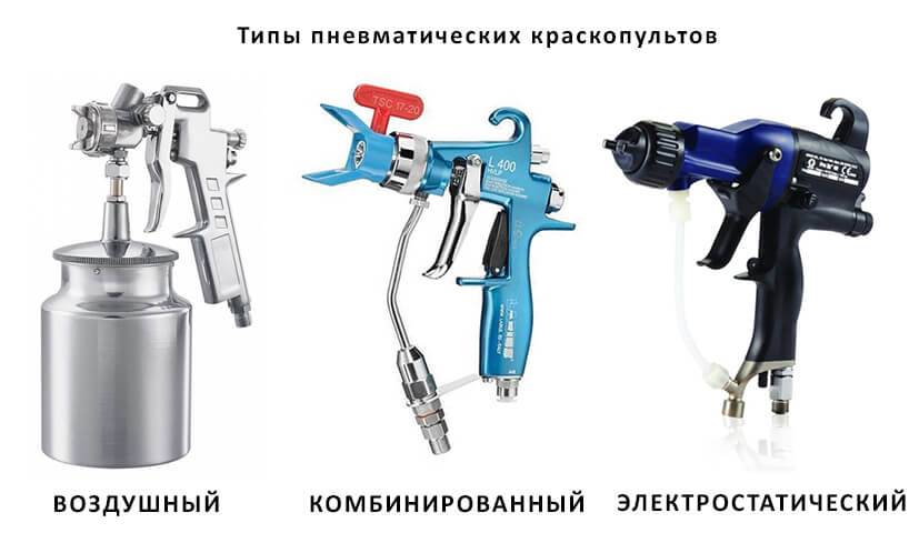 По варианту нагнетания воздуха краскопульты для покраски потолка краской могут быть поделены на три разновидности: