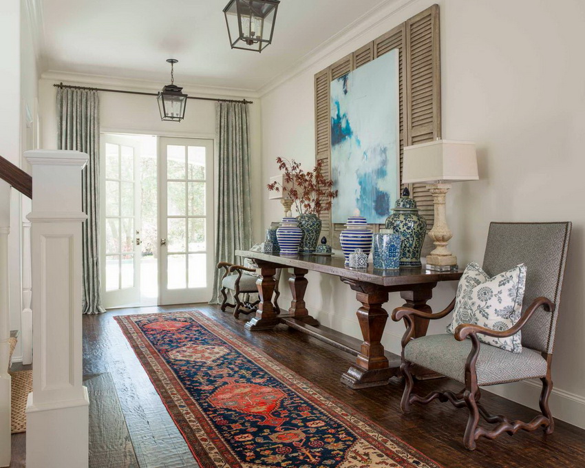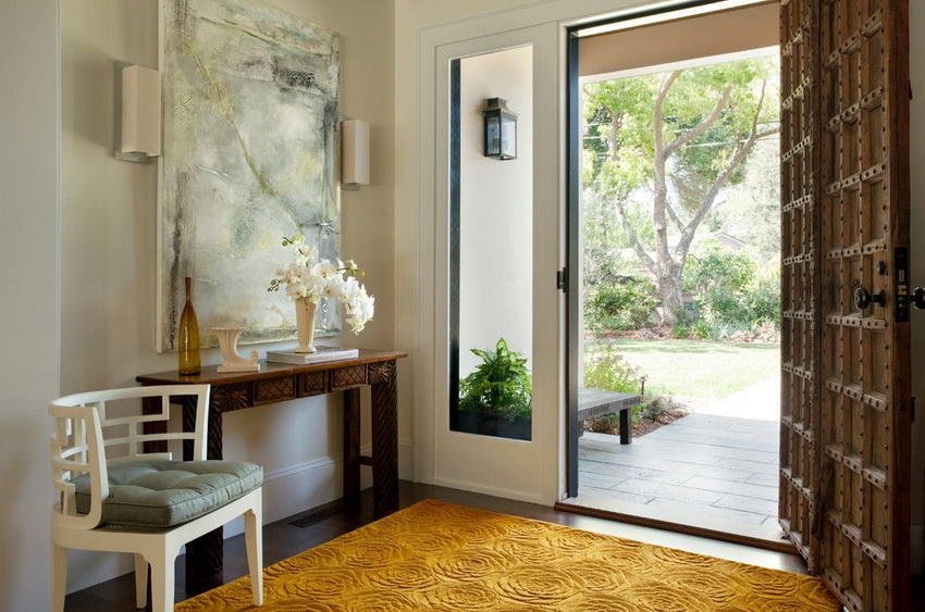 Яркая консоль с выразительным обликом освежит интерьер просторной прихожей
