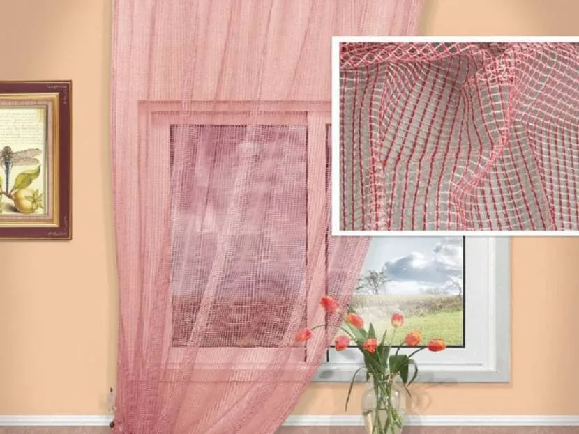 - Тюлевая сетка. Фактурная ткань с крупными или мелкими ячейками хорошо пропускает свет.