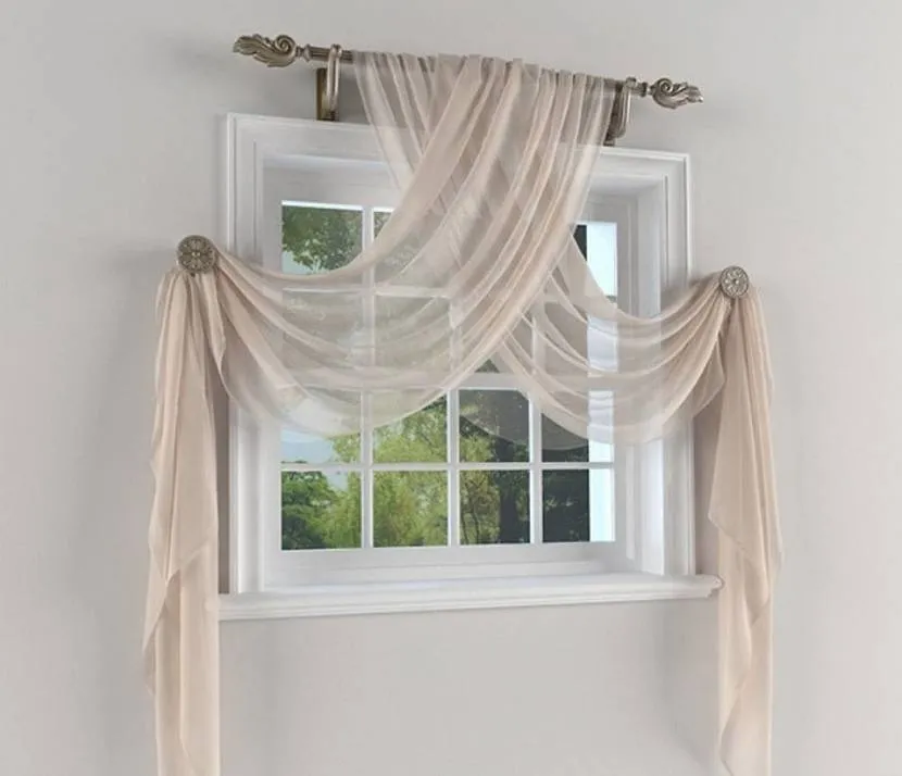 В быту их называют скрещенными занавесками. Две драпировки полностью соединяются по верхнему краю, а концы разводятся в разные стороны. Материал – в основном полупрозрачный, потому что такие шторы сильно затемняют комнату. Зато они смотрятся мягко и элегантно.