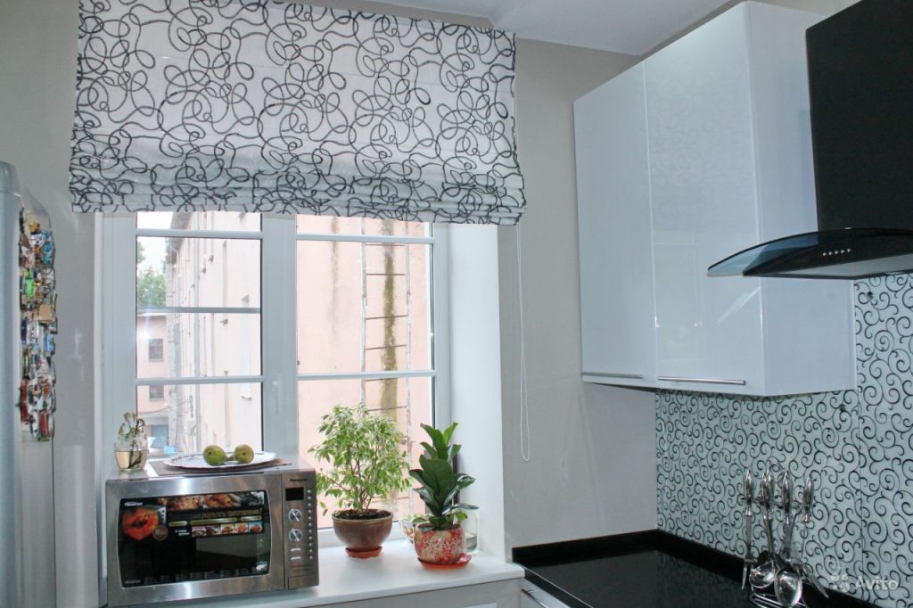 На кухне часто окно располагается над мойкой, или есть необходимость в использовании подоконника, поэтому короткие модели часто используются для декора оконного проема.