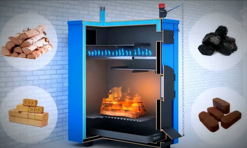 Традиционные — используют тепло от сгорания закладочного материала. Современные модели используют технику верхнего горения, которая обеспечивает поочередное горение каждого топлива. Из-за чего уменьшается количество золы, а КПД повышается до 80 %.
