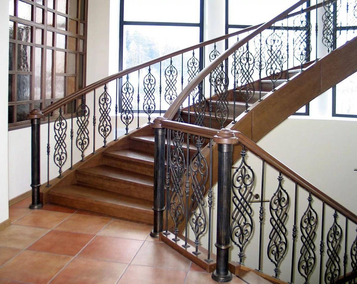 Внешний вид кованых перил для лестницы, устанавливаемых в частном доме, обычно существенно отличается друг от друга. Выбор может быть сделан в пользу конструкции: