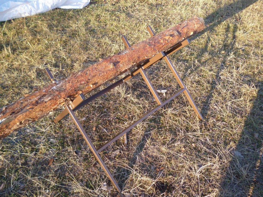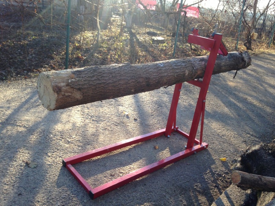 Если же у человека нет возможности приобрести готовое изделие, ему необходимо попытаться сделать его самостоятельно. Очень неплохо зарекомендовал себя метод с использованием тяжелой основы и креплением пары рожек для фиксации бревна.