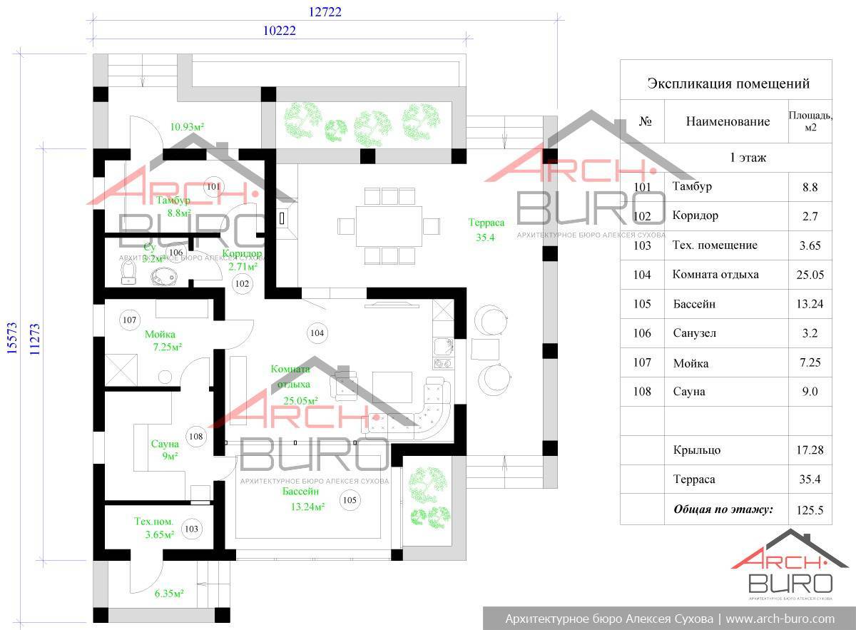 Целебный пар жаркой сауны с печкой-каменкой и удобными лежаками подарит отличное самочувствие и как рукой снимет любую усталость, а бассейн с прохладной водой – взбодрит и вернет нужный тонус и настроение. И все это сможет быть вашим уже совсем скоро! Все, что для этого нужно, — обратиться в наше архитектурное бюро и доверить осуществление мечты опытным и компетентным профессионалам.
