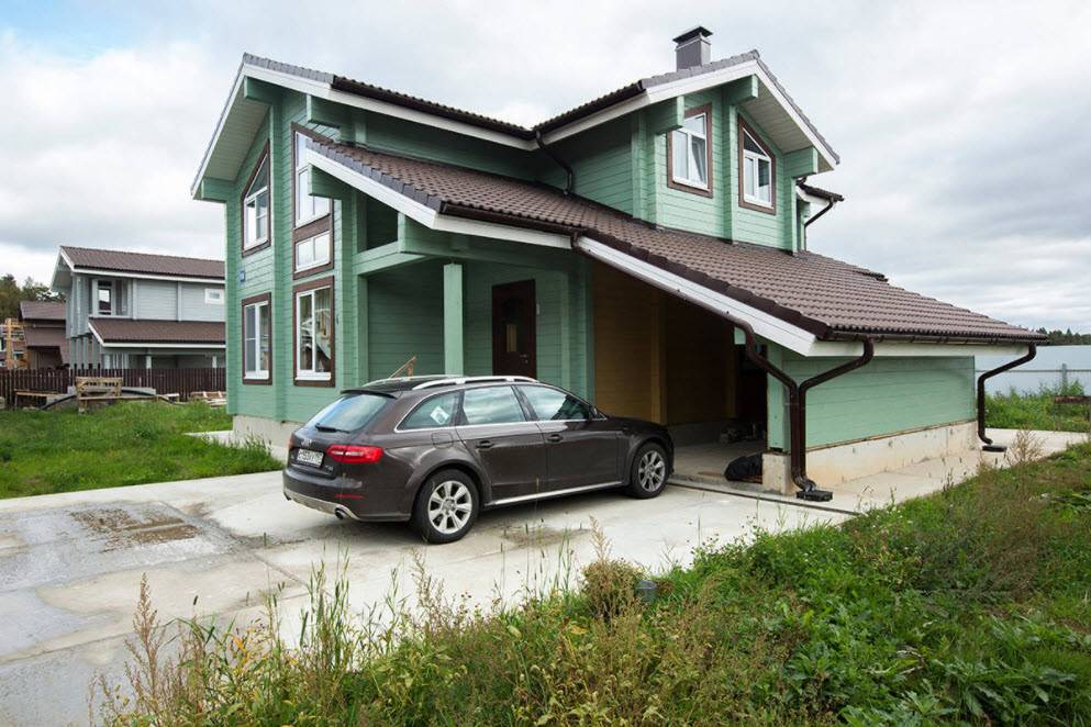 Пристроить гараж к такому дому очень просто (если не пристраивался изначально), поэтому не требуются излишние денежные затраты. Кроме того, в уютном домике или на даче это создаст дополнительную полезную площадь для хранения сезонных вещей. Единственное, что следует учитывать – расположение гаража. Лучше не строить его возле террасы или веранды, так как это испортит отдых, а грязь на стеклах испортит настроение.