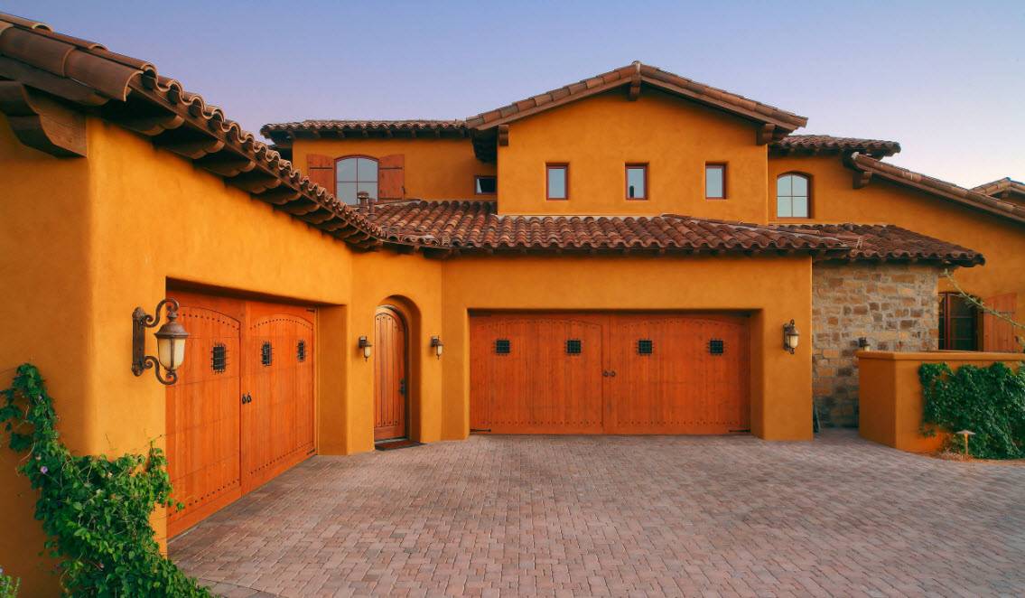 По своей сути кантри – это тот же деревенский стиль, но с западным уклоном. Тут преобладает светлое гладкое дерево, балки и брусья, керамика, глина, яркая утварь и аксессуары. Используется камень и кирпич, а в сухих зонах – кожа и кованые элементы.