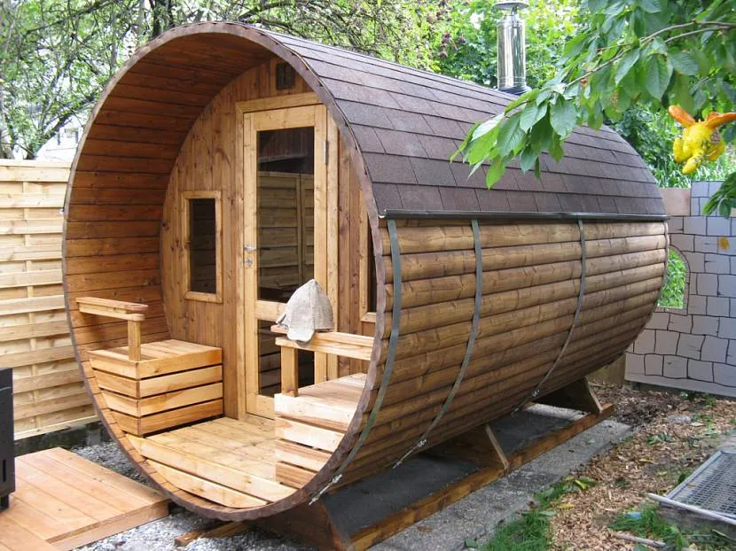 Сауна-бочка — популярный тренд благодаря своей компактности и мобильности. Здесь не придется тратить время на прогрев углов.Источник pinterest.com