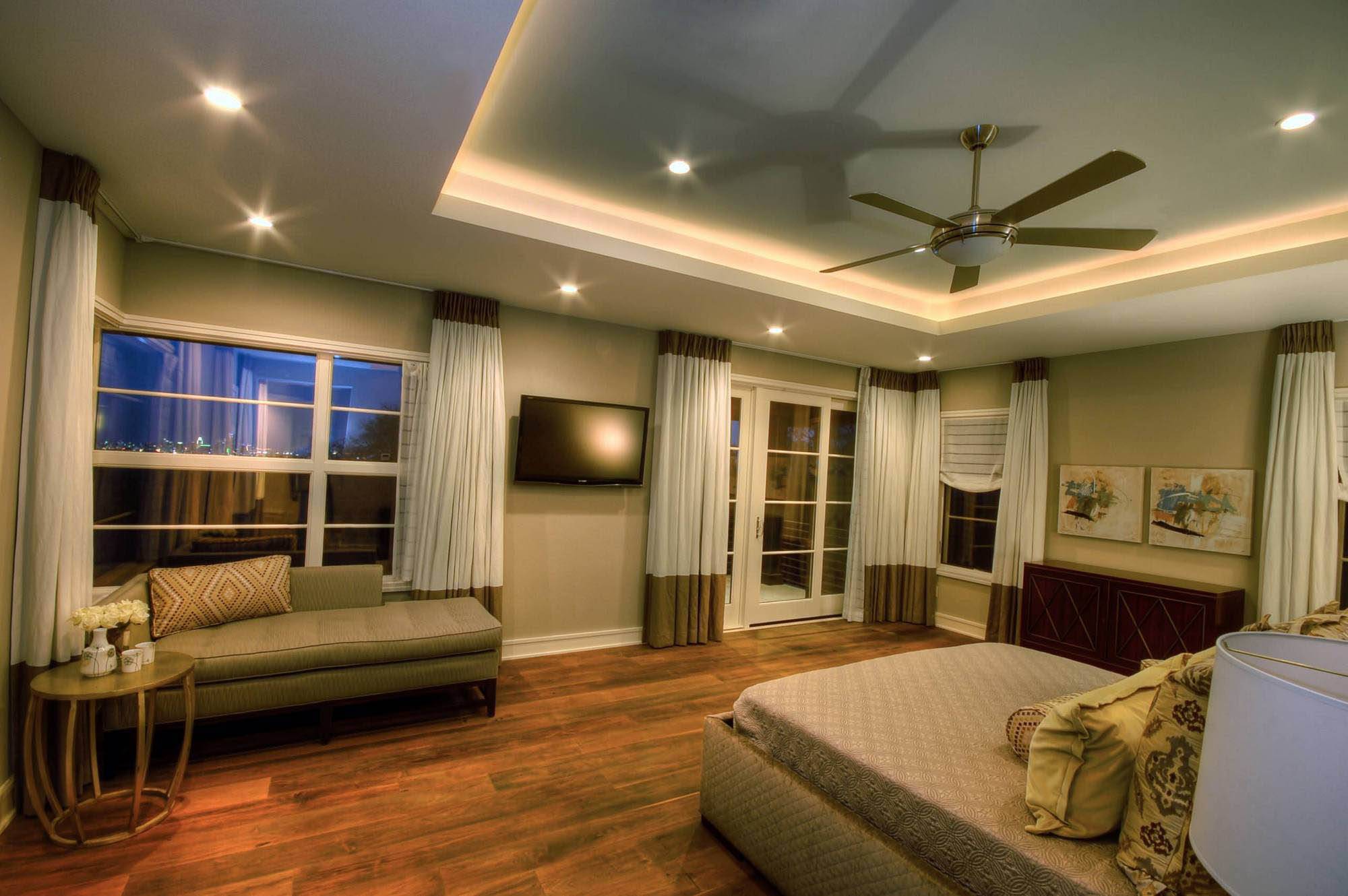 Выглядит достаточно оригинально и привносит в комнату некой таинственности. Наличие такого потолочного подиума делает освещение равномерным и более мягким.